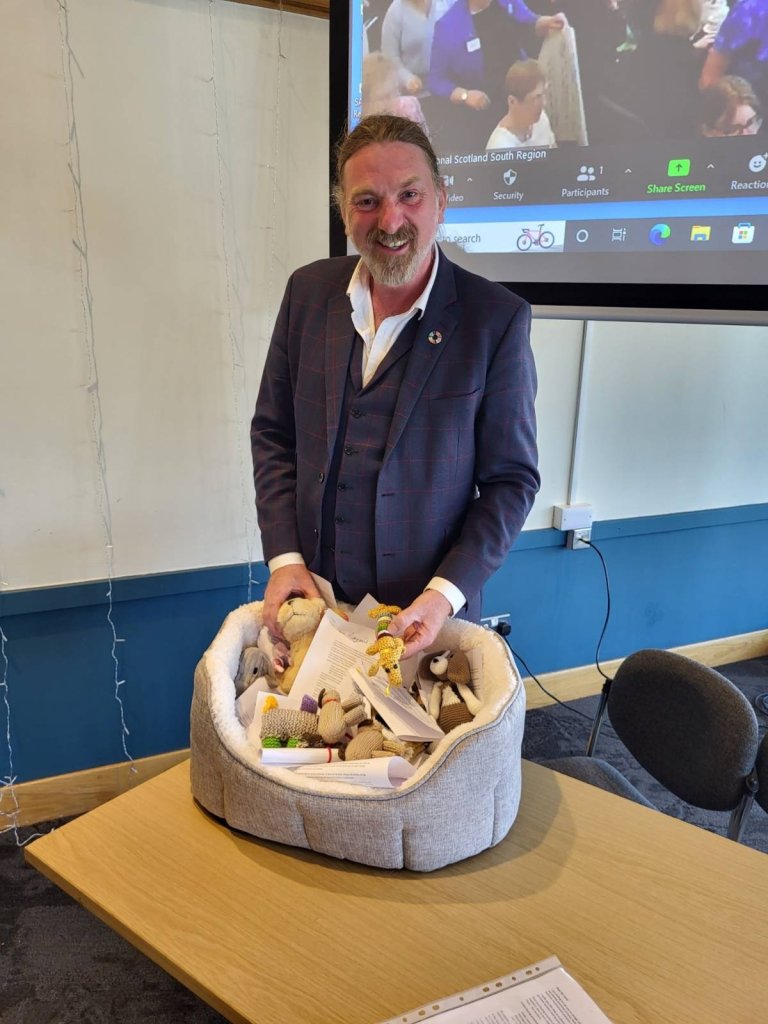 Members of Soroptimist International met at Dundee’s Discovery Point on Saturday 3rd June to discuss issues around fast fashion and how communities can collectively transform the fashion trade to work for all involved. As part of the conference, members handed over crafted handmade dogs to Chris Law for delivery to Scottish MPs who have not yet backed the campaign.